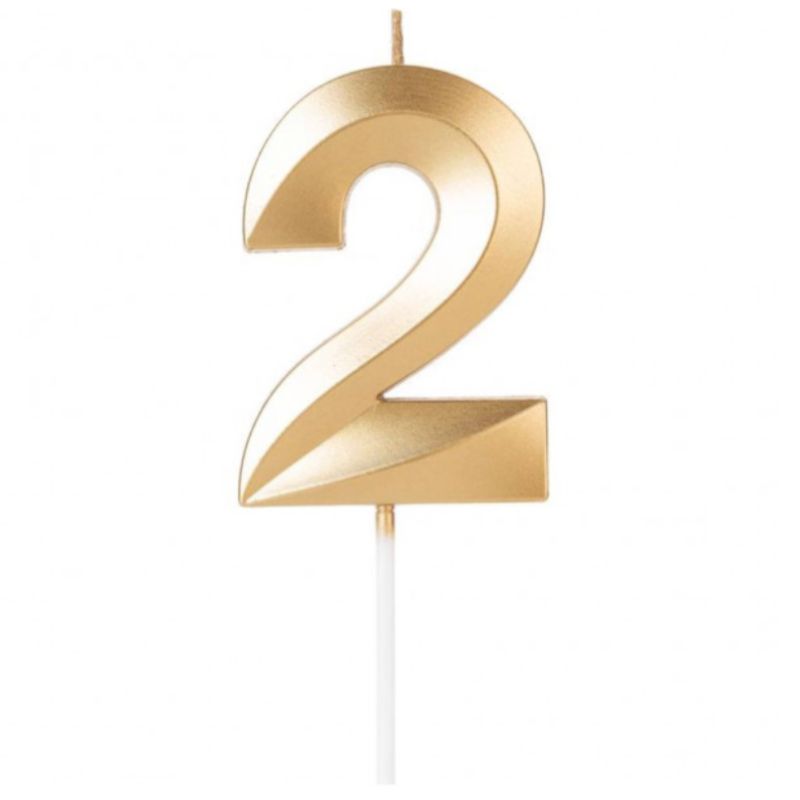 VELA DE ANIVERSÁRIO DOURADA DESIGN NÚMERO 2 - 01 UNIDADE - SILVER FESTAS - LOJA DO ABENÇOADO