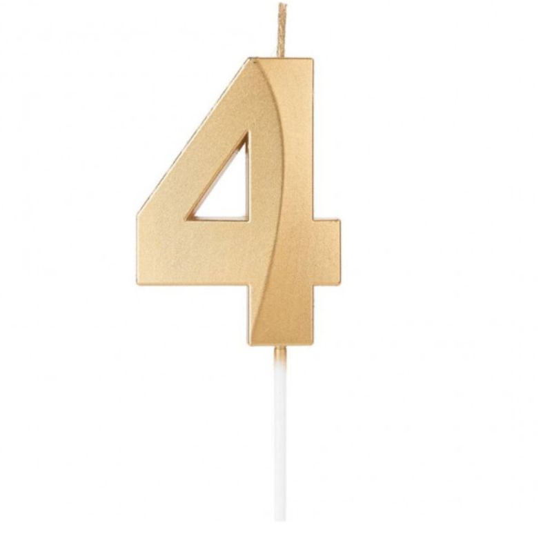 VELA DE ANIVERSÁRIO DOURADA DESIGN NÚMERO 4 - 01 UNIDADE - SILVER FESTAS - LOJA DO ABENÇOADO