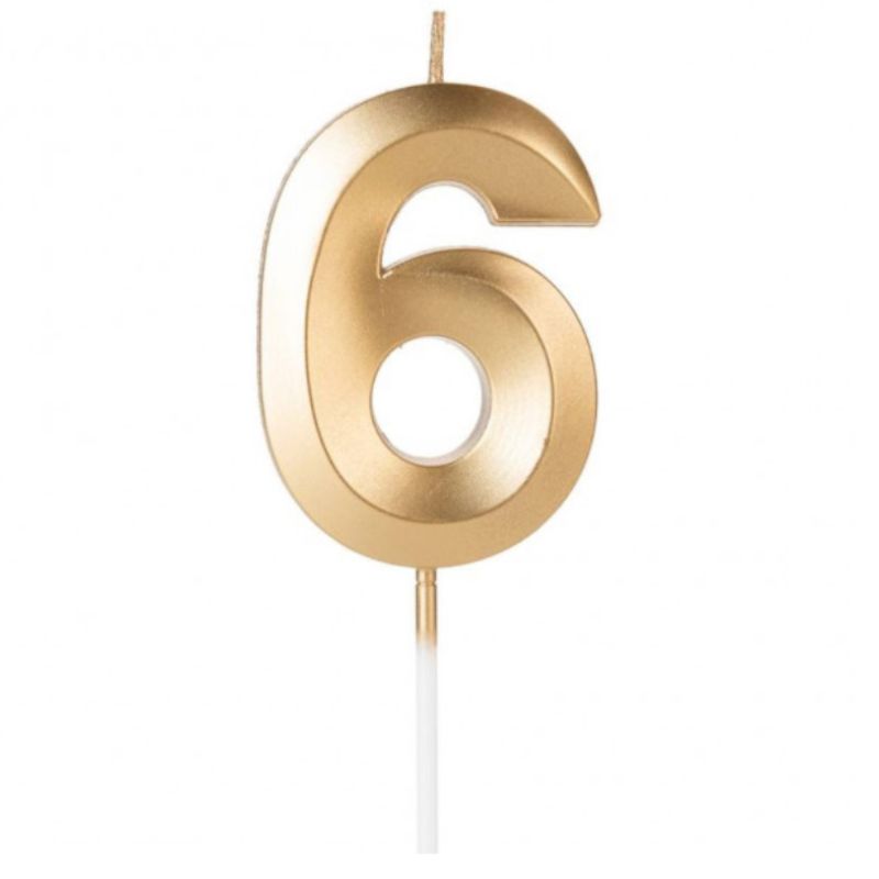 VELA DE ANIVERSÁRIO DOURADA DESIGN NÚMERO 6 - 01 UNIDADE - SILVER FESTAS - LOJA DO ABENÇOADO