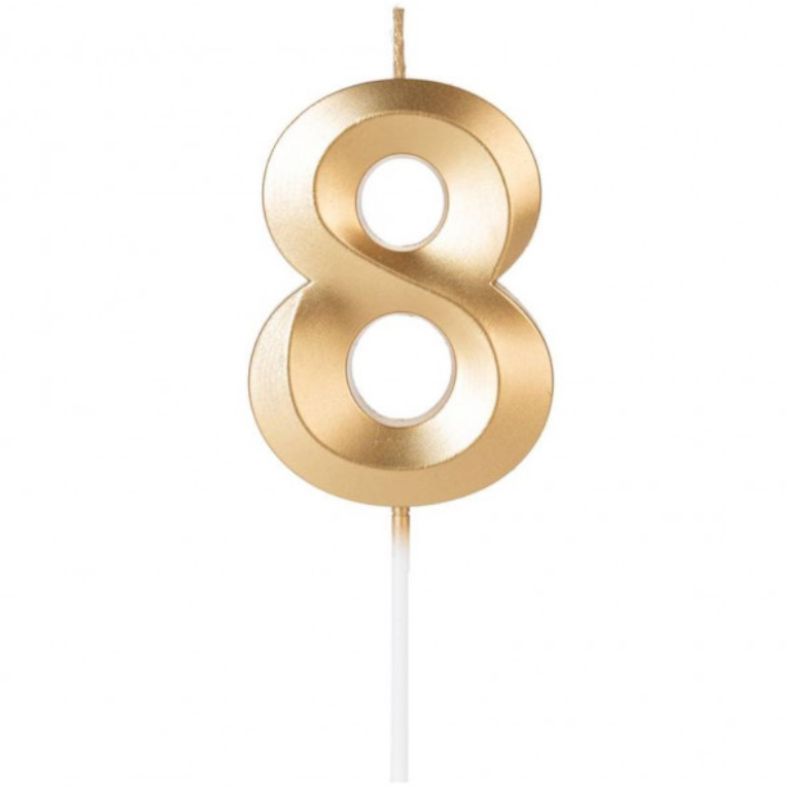 VELA DE ANIVERSÁRIO DOURADA DESIGN NÚMERO 8 - 01 UNIDADE - SILVER FESTAS - LOJA DO ABENÇOADO