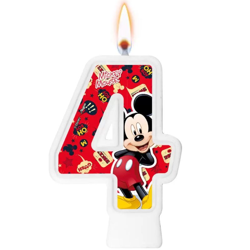 VELA DE ANIVERSÁRIO FESTA MICKEY NÚMERO 4 - 01 UNIDADE - REGINA FESTAS - LOJA DO ABENÇOADO