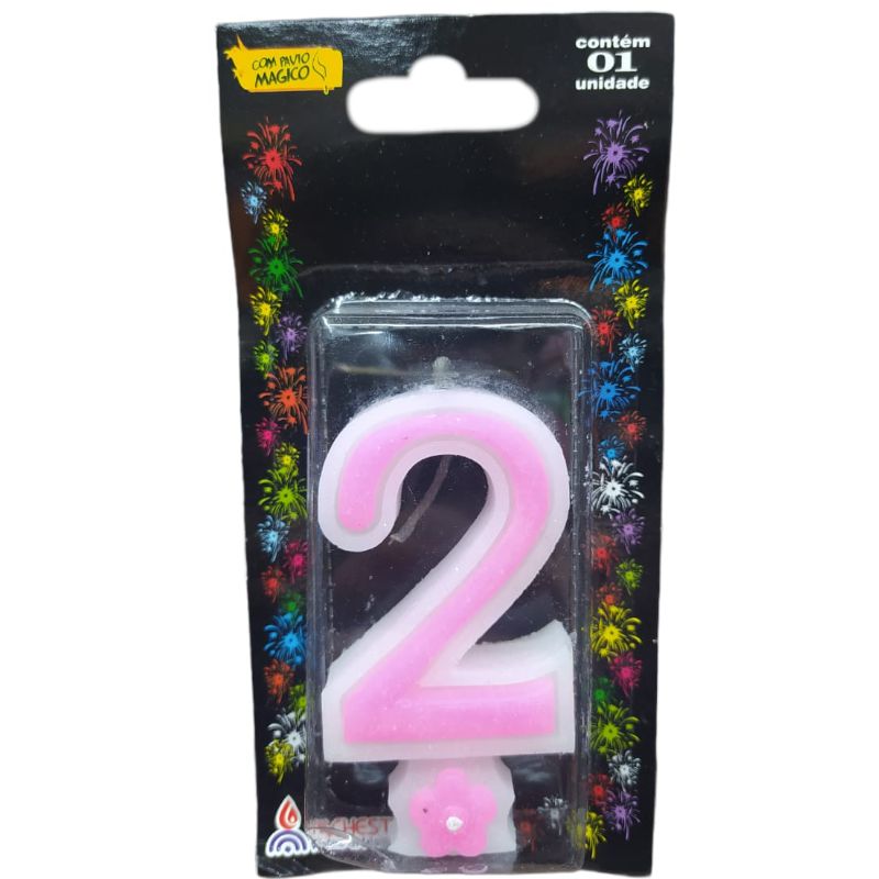 VELA DE ANIVERSÁRIO FLOR ROSA - N°2 - 01 UNIDADE - ALCHESTER - LOJA DO ABENÇOADO