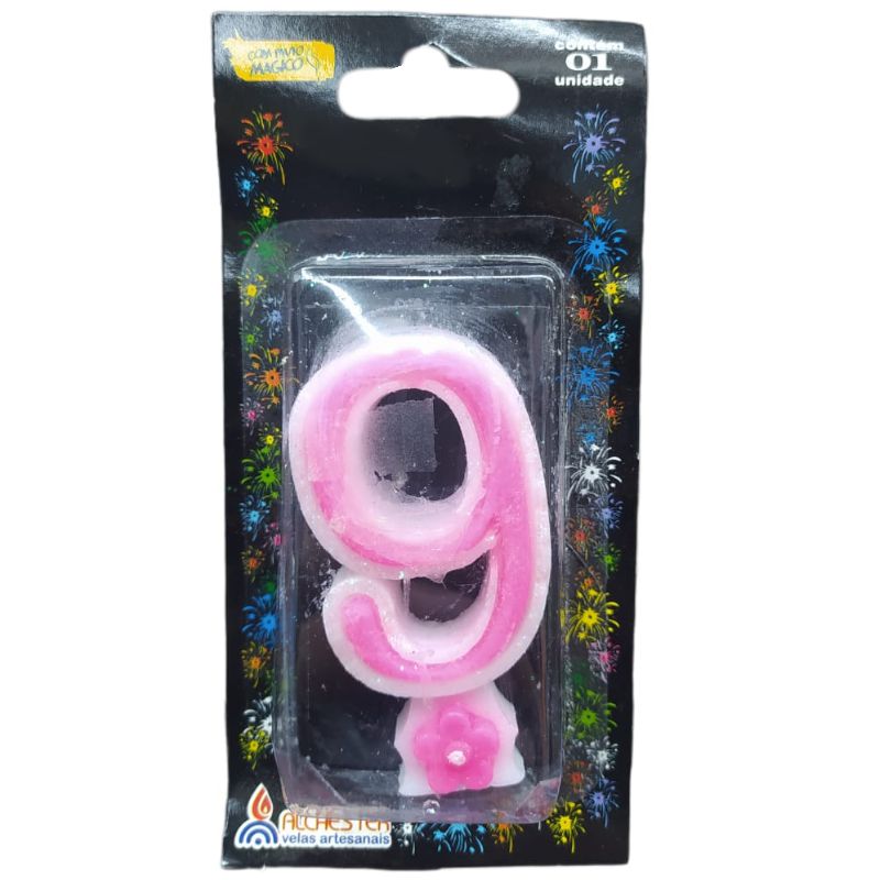 VELA DE ANIVERSÁRIO FLOR ROSA - N°9 - 01 UNIDADE - ALCHESTER - LOJA DO ABENÇOADO