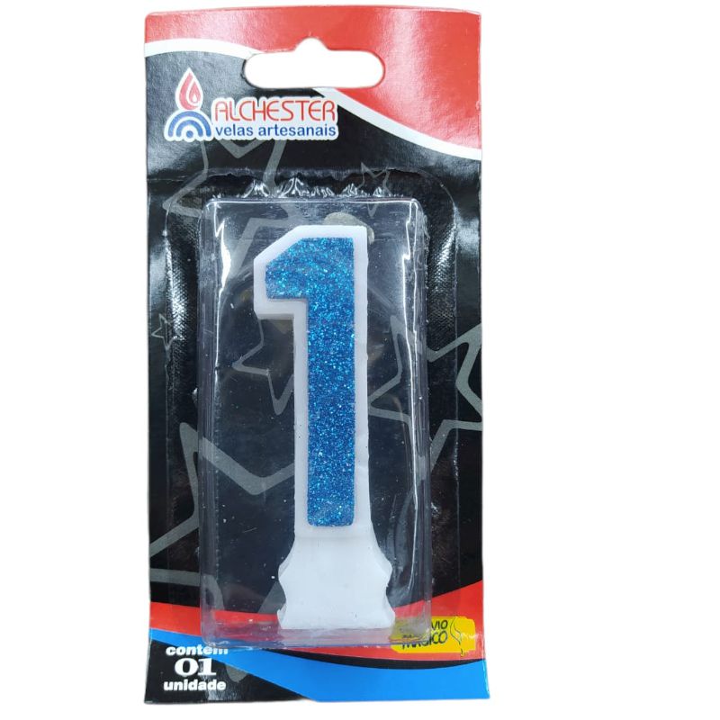 VELA DE ANIVERSÁRIO GLITTER AZUL- N° 1 - 01 UNIDADE - ALCHESTER - LOJA DO ABENÇOADO