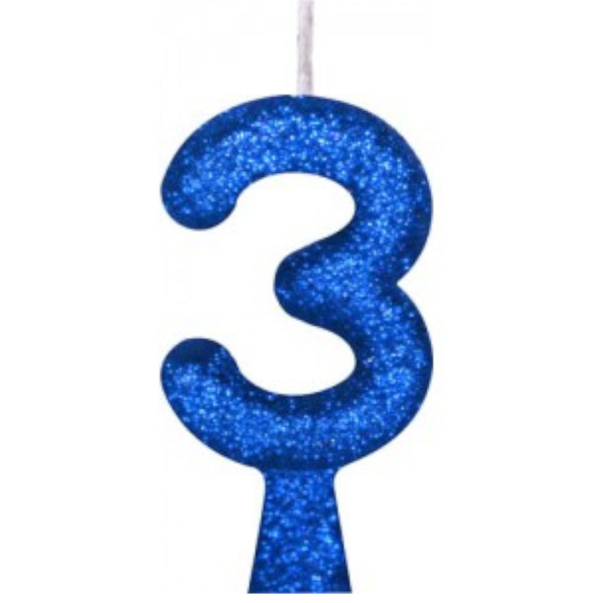 VELA DE ANIVERSÁRIO GLITTER AZUL TUBULAR PREMIUM - N° 3 - COM 01 UNIDADE - BELLO FESTAS - LOJA DO ABENÇOADO