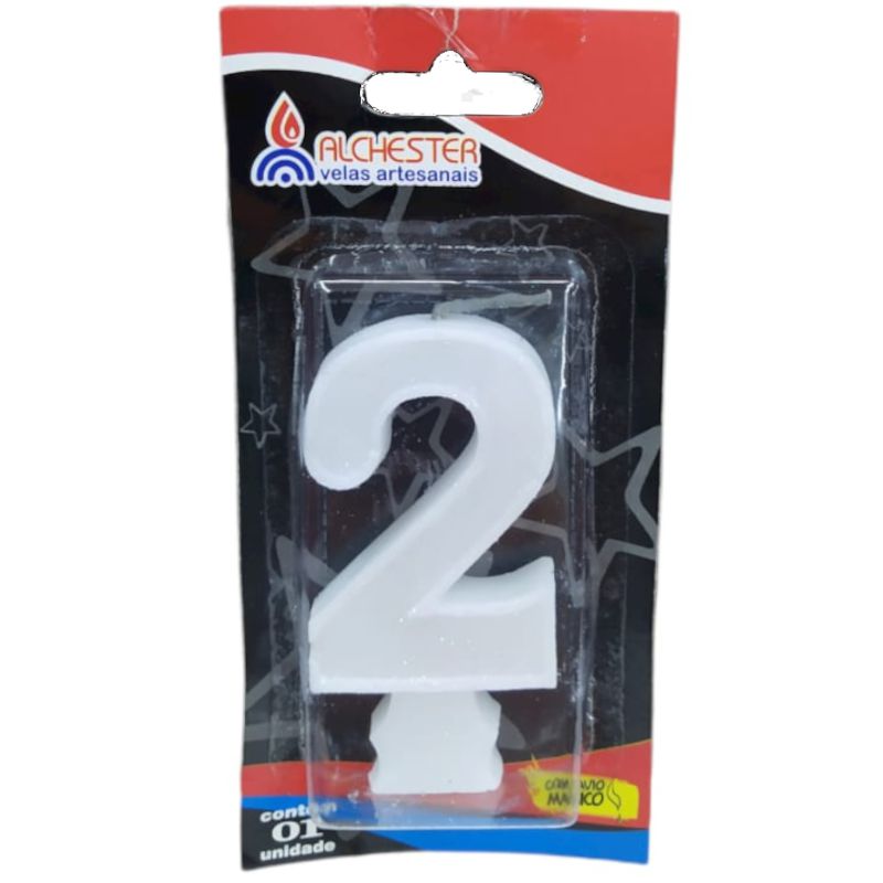 VELA DE ANIVERSÁRIO GLITTER BRANCO - N° 2 - 01 UNIDADE - ALCHESTER - LOJA DO ABENÇOADO