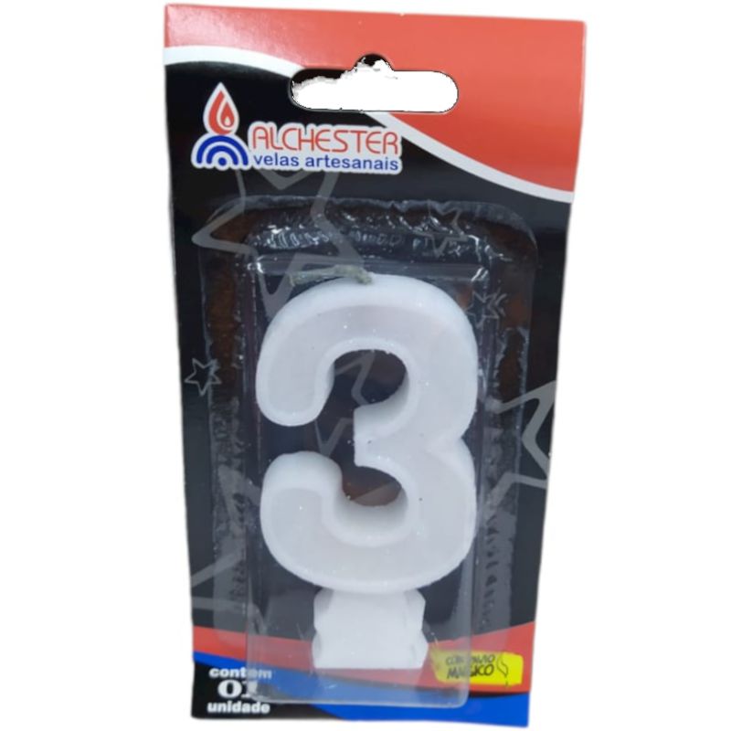 VELA DE ANIVERSÁRIO GLITTER BRANCO - N° 3 - 01 UNIDADE - ALCHESTER - LOJA DO ABENÇOADO