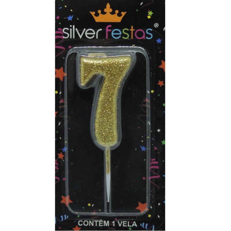 VELA GLITTER DOURADA - NÚMERO 7 - SILVER FESTAS - LOJA DO ABENÇOADO