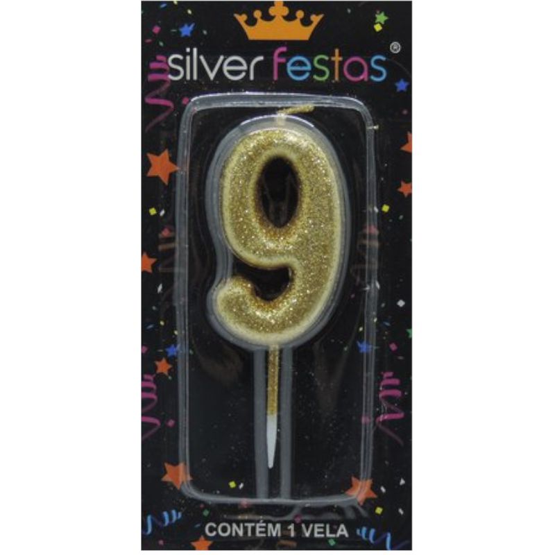 VELA GLITTER DOURADA - NÚMERO 9 - SILVER FESTAS - LOJA DO ABENÇOADO