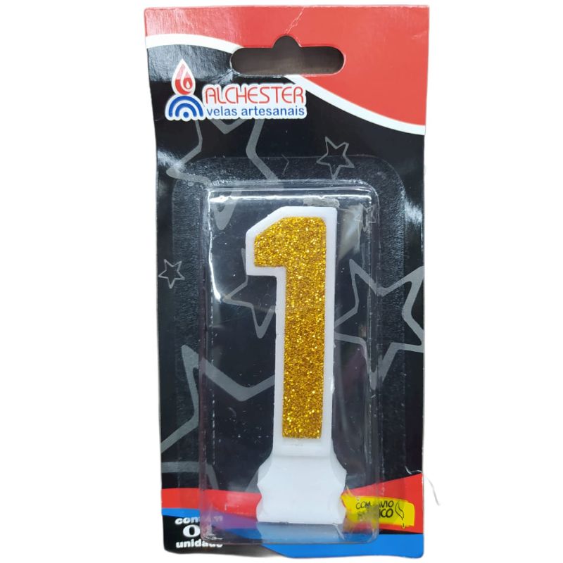 VELA DE ANIVERSÁRIO GLITTER OURO - N° 1 - 01 UNIDADE - ALCHESTER - LOJA DO ABENÇOADO