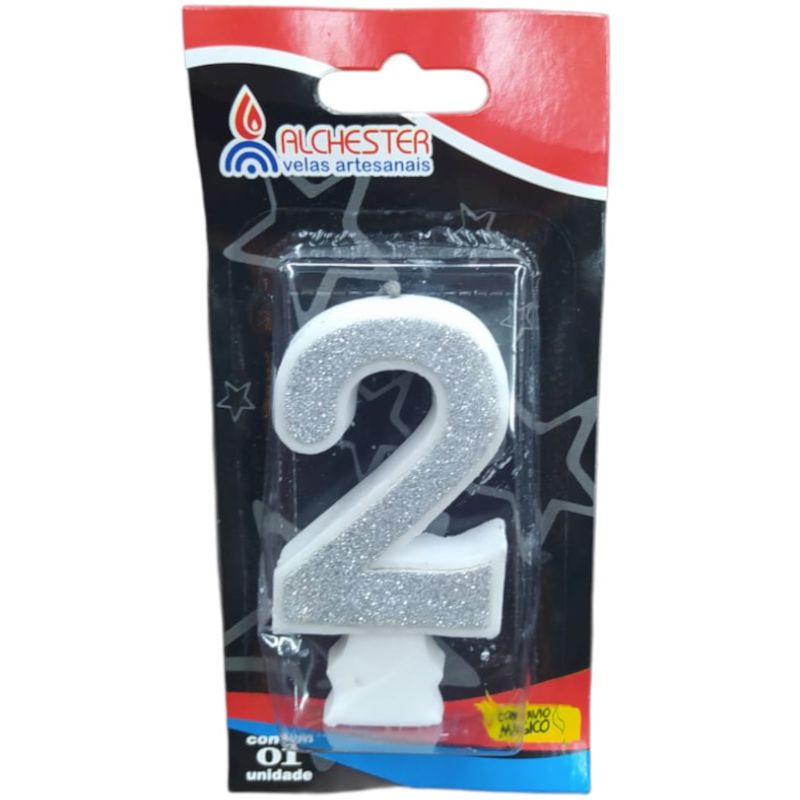 VELA DE ANIVERSÁRIO GLITTER PRATA - N° 2 - 01 UNIDADE - ALCHESTER - LOJA DO ABENÇOADO