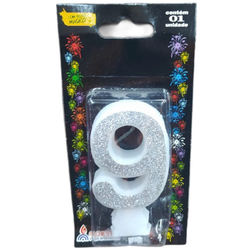 VELA DE ANIVERSÁRIO GLITTER PRATA - N° 9 - 01 UNIDADE - ALCHESTER - LOJA DO ABENÇOADO