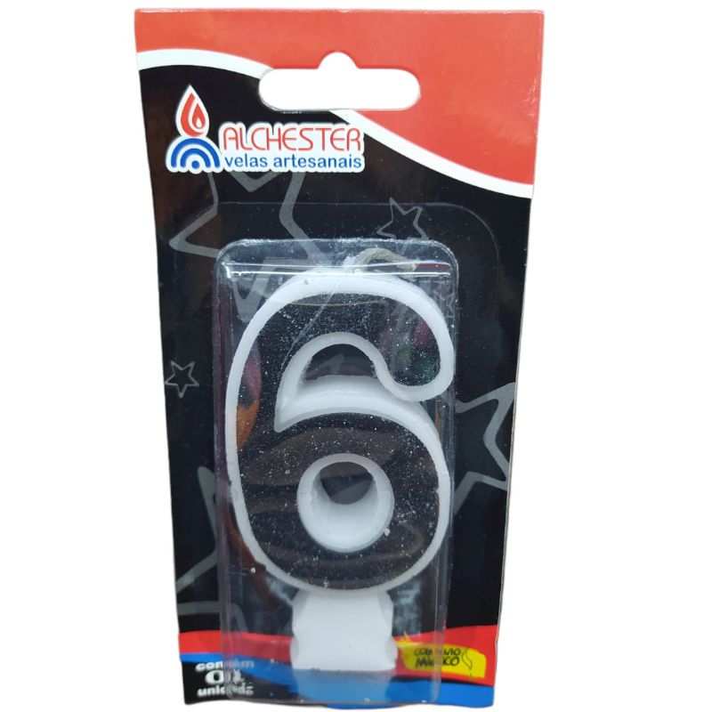 VELA DE ANIVERSÁRIO GLITTER PRETA - N° 6 - 01 UNIDADE - ALCHESTER - LOJA DO ABENÇOADO