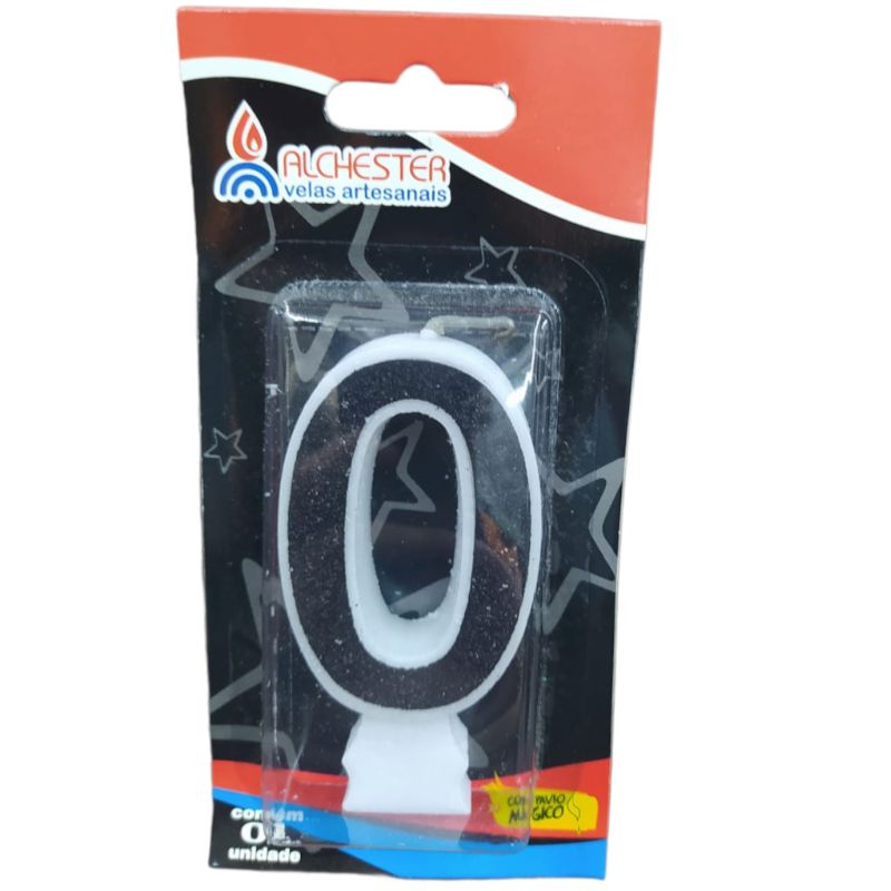 VELA DE ANIVERSÁRIO GLITTER PRETO - N° 0 - 01 UNIDADE - ALCHESTER - LOJA DO ABENÇOADO