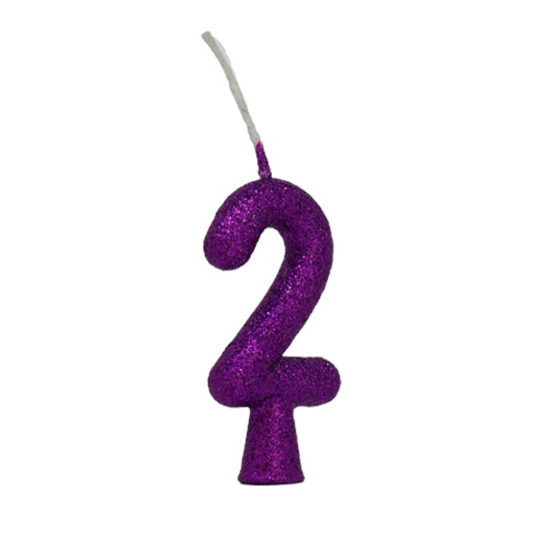 VELA DE ANIVERSÁRIO GLITTER ROXO TUBULAR PREMIUM - N° 2 - COM 01 UNIDADE - BELLO FESTAS - LOJA DO ABENÇOADO