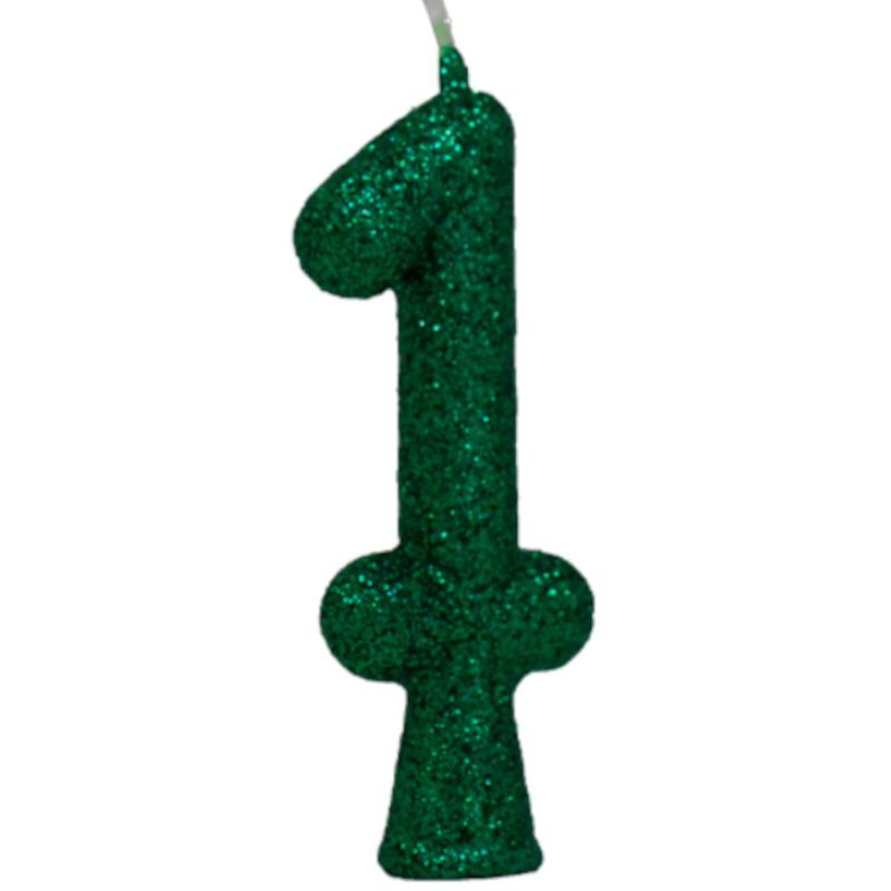 VELA DE ANIVERSÁRIO GLITTER VERDE TUBULAR PREMIUM - N° 1 - COM 01 UNIDADE - BELLO FESTAS - LOJA DO ABENÇOADO