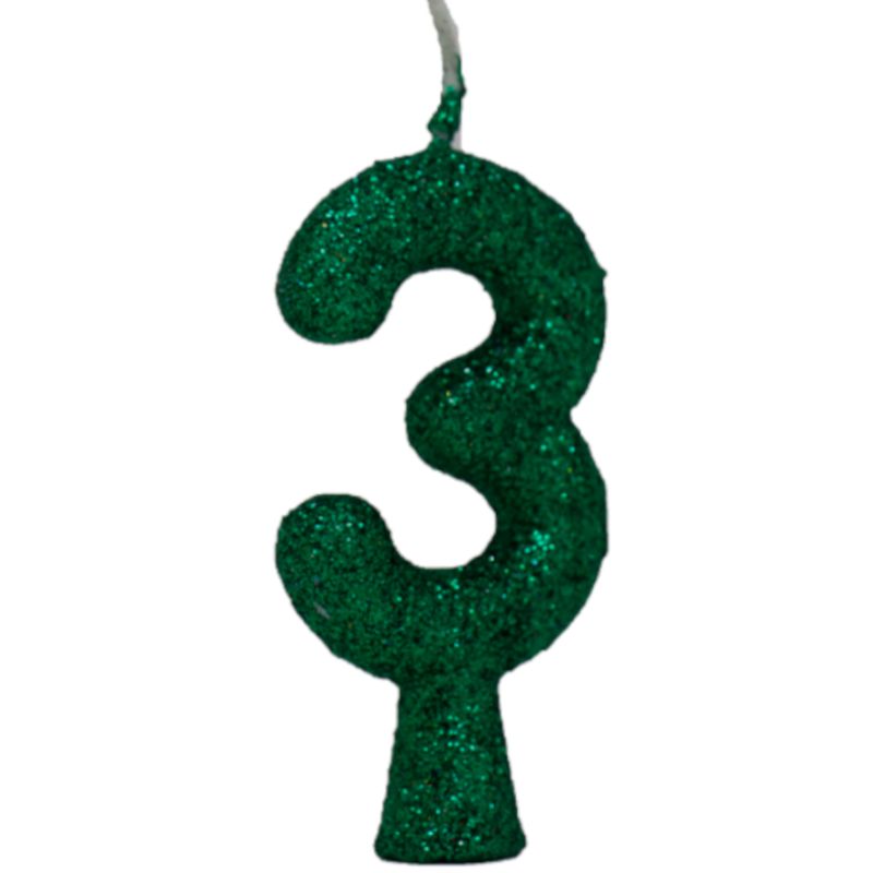 VELA DE ANIVERSÁRIO GLITTER VERDE TUBULAR PREMIUM - N° 3 - COM 01 UNIDADE - BELLO FESTAS - LOJA DO ABENÇOADO