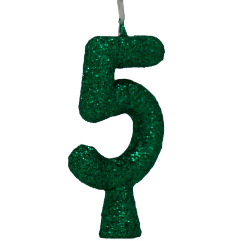 VELA DE ANIVERSÁRIO GLITTER VERDE TUBULAR PREMIUM - N° 5 - COM 01 UNIDADE - BELLO FESTAS - LOJA DO ABENÇOADO