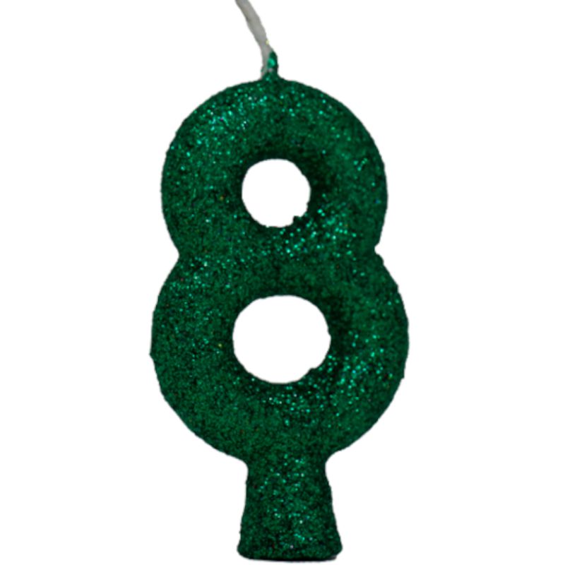 VELA DE ANIVERSÁRIO GLITTER VERDE TUBULAR PREMIUM - N° 8 - COM 01 UNIDADE - BELLO FESTAS - LOJA DO ABENÇOADO