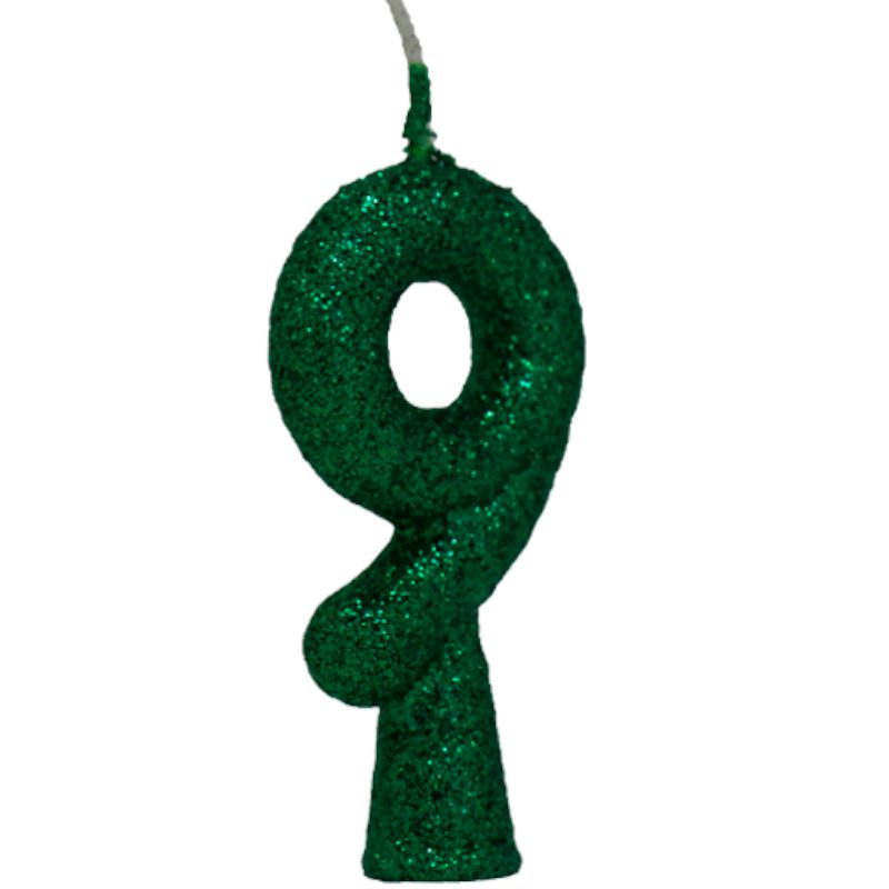 VELA DE ANIVERSÁRIO GLITTER VERDE TUBULAR PREMIUM - N° 9 - COM 01 UNIDADE - BELLO FESTAS - LOJA DO ABENÇOADO