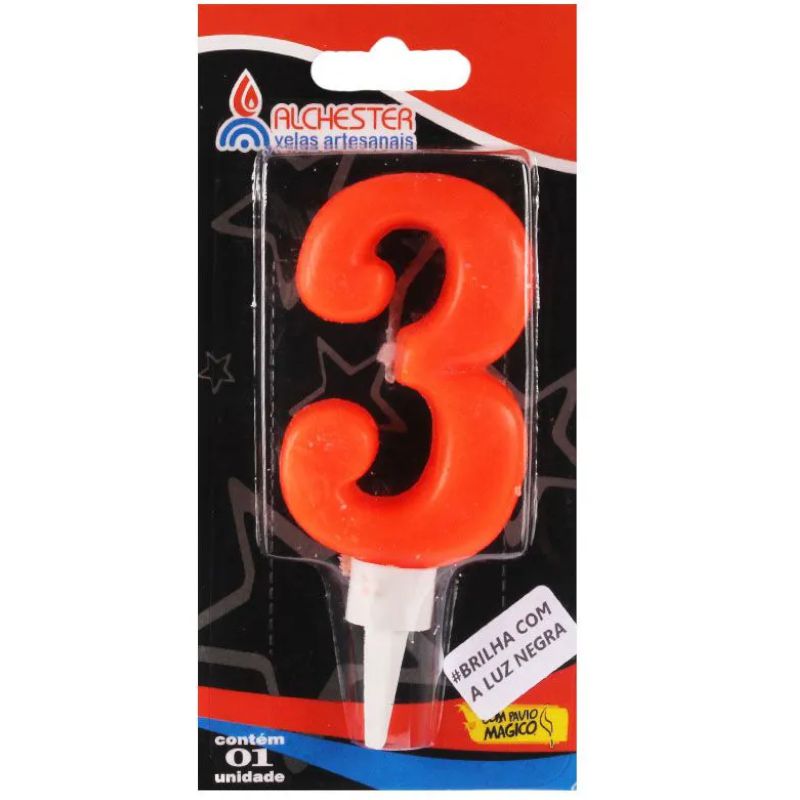 VELA DE ANIVERSÁRIO LARANJA NEON - Nº3 - FESTA NEON - 01 UNIDADE - ALCHESTER - LOJA DO ABENÇOADO