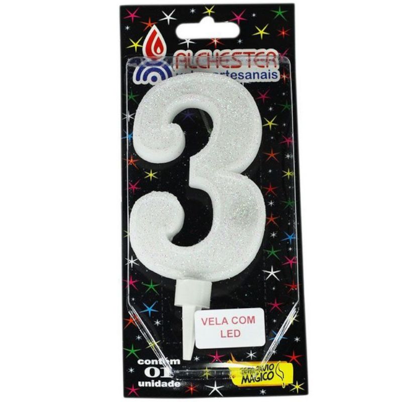 VELA DE ANIVERSÁRIO LED N°3 - 01 UNIDADE - ALCHESTER - LOJA DO ABENÇOADO