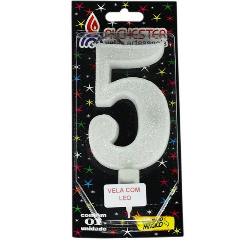 VELA DE ANIVERSÁRIO LED N°5 - 01 UNIDADE - ALCHESTER - LOJA DO ABENÇOADO