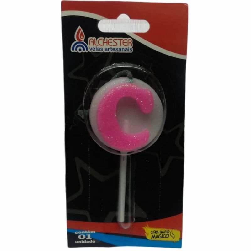 VELA DE ANIVERSÁRIO LETRA C - ROSA - 01 UNIDADE - ALCHESTER - LOJA DO ABENÇOADO