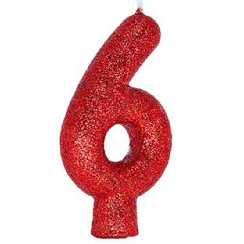 VELA DE ANIVERSÁRIO N°6 CINTILANTE VERMELHO - 01 UNIDADE - REGINA FESTAS - LOJA DO ABENÇOADO