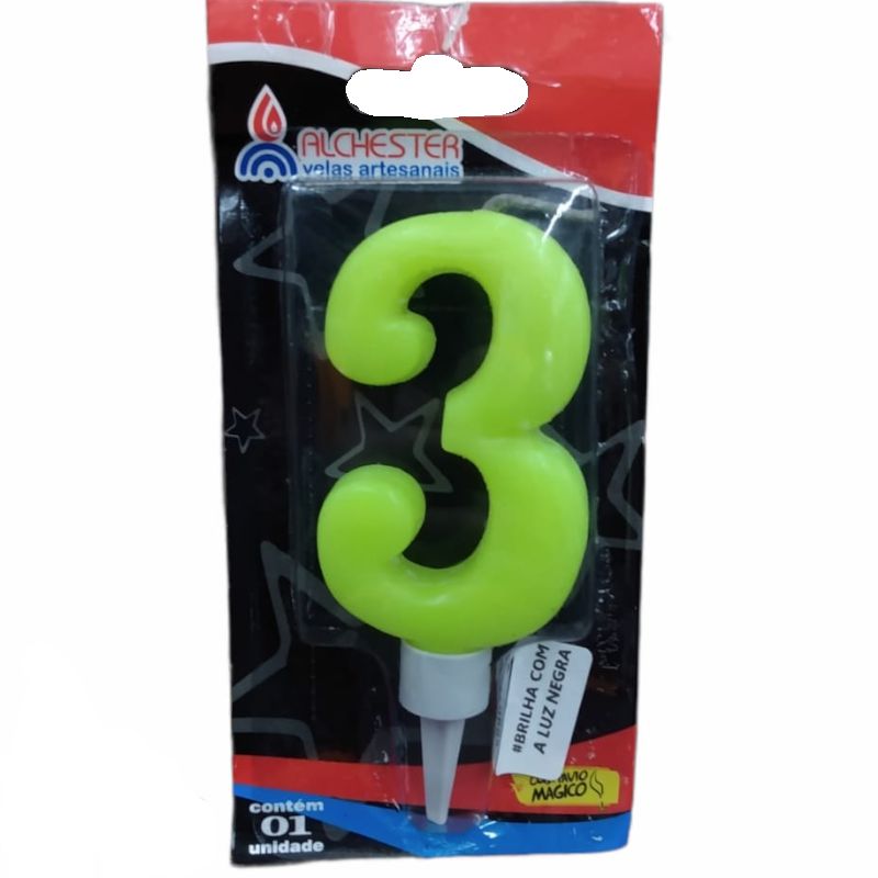 VELA DE ANIVERSÁRIO NEON - Nº3 - FESTA NEON - 01 UNIDADE - ALCHESTER - LOJA DO ABENÇOADO