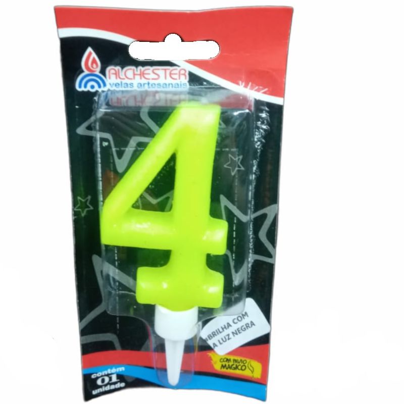 VELA DE ANIVERSÁRIO NEON - Nº4 - FESTA NEON - 01 UNIDADE - ALCHESTER - LOJA DO ABENÇOADO