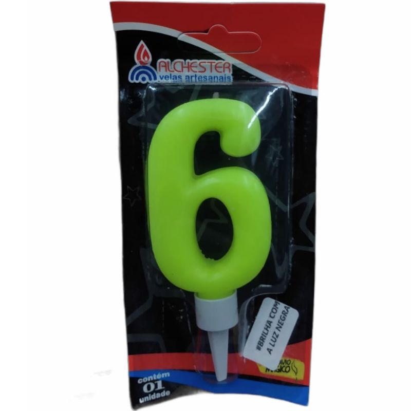 VELA DE ANIVERSÁRIO NEON - Nº6 - FESTA NEON - 01 UNIDADE - ALCHESTER - LOJA DO ABENÇOADO