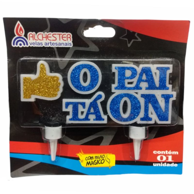 VELA DE ANIVERSÁRIO O PAI TÁ ON AZUL - CONTÉM 01 UNIDADE - ALCHESTER - LOJA DO ABENÇOADO