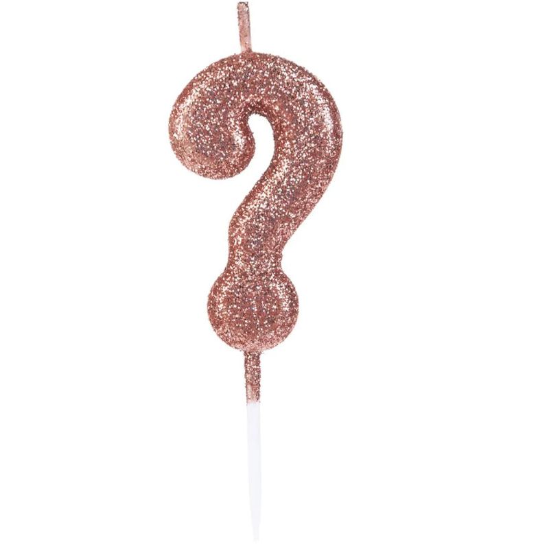 VELA DE ANIVERSÁRIO PEQUENA ROSE GOLD GLITTER INTERROGAÇÃO - 01 UNIDADE - SILVER FESTAS - LOJA DO ABENÇOADO