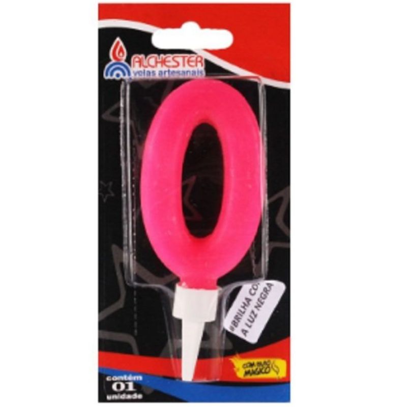 VELA DE ANIVERSÁRIO PINK NEON - Nº0 - FESTA NEON - 01 UNIDADE - ALCHESTER - LOJA DO ABENÇOADO