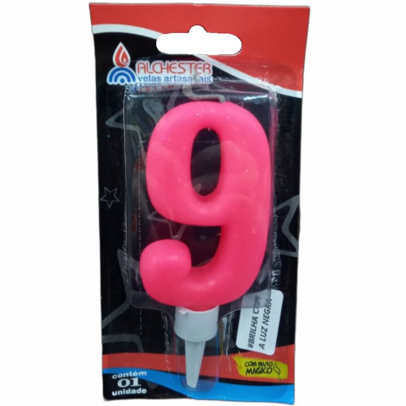VELA DE ANIVERSÁRIO PINK NEON - Nº9 - FESTA NEON - 01 UNIDADE - ALCHESTER - LOJA DO ABENÇOADO