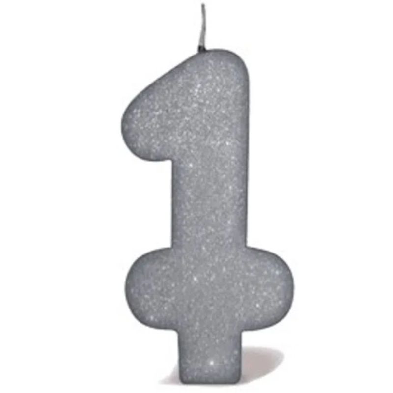 VELA DE ANIVERSARIO PRATEADA GLITTER - NÚMERO 1 - 01 UNIDADE - SILVER FESTAS - LOJA DO ABENÇOADO