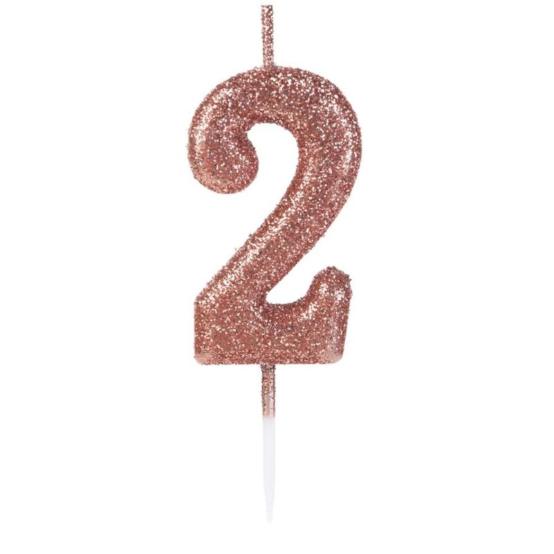 VELA DE ANIVERSÁRIO ROSE GOLD GLITTER PEQUENA - NÚMERO 2 - 01 UNIDADE - SILVER FESTAS - LOJA DO ABENÇOADO