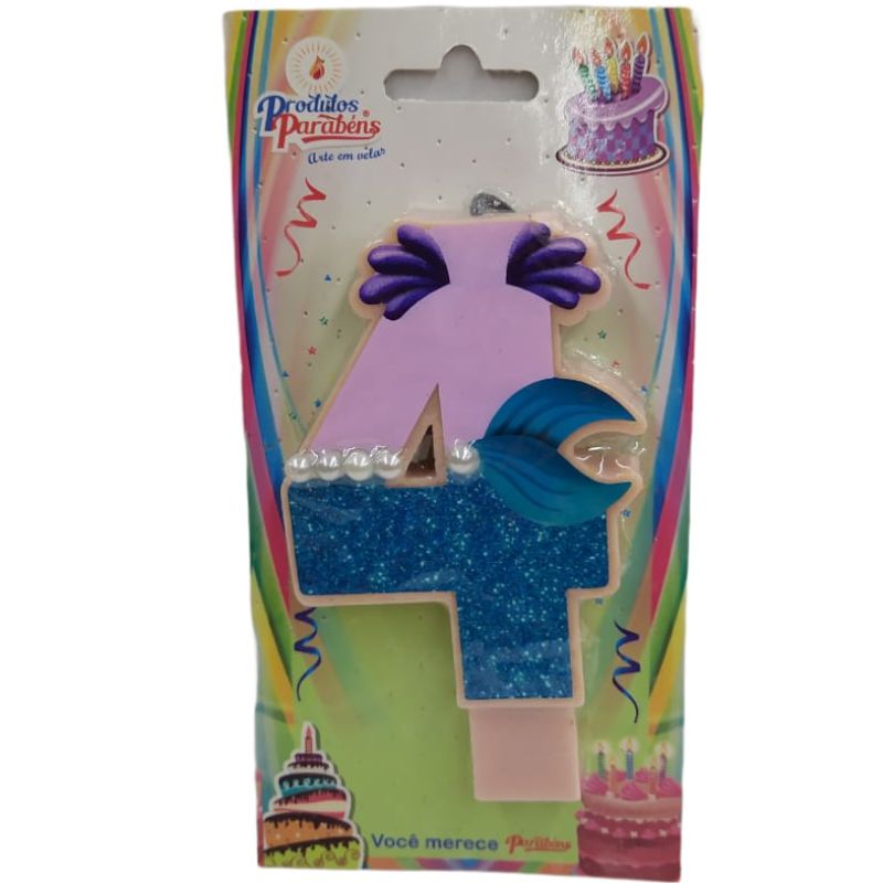 VELA DE ANIVERSÁRIO SEREIA - N° 4 - 01 UNIDADE - PRODUTOS PARABÉNS - LOJA DO ABENÇOADO