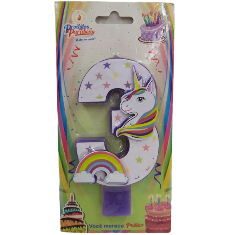 VELA DE ANIVERSÁRIO UNICÓRNIO N°3 - 01 UNIDADE - PRODUTOS PARABÉNS - LOJA DO ABENÇOADO