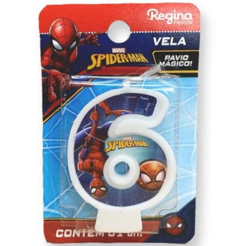 VELA FESTA HOMEM ARANHA - NÚMERO 6 - 01 UNIDADE - REGINA FESTAS - LOJA DO ABENÇOADO