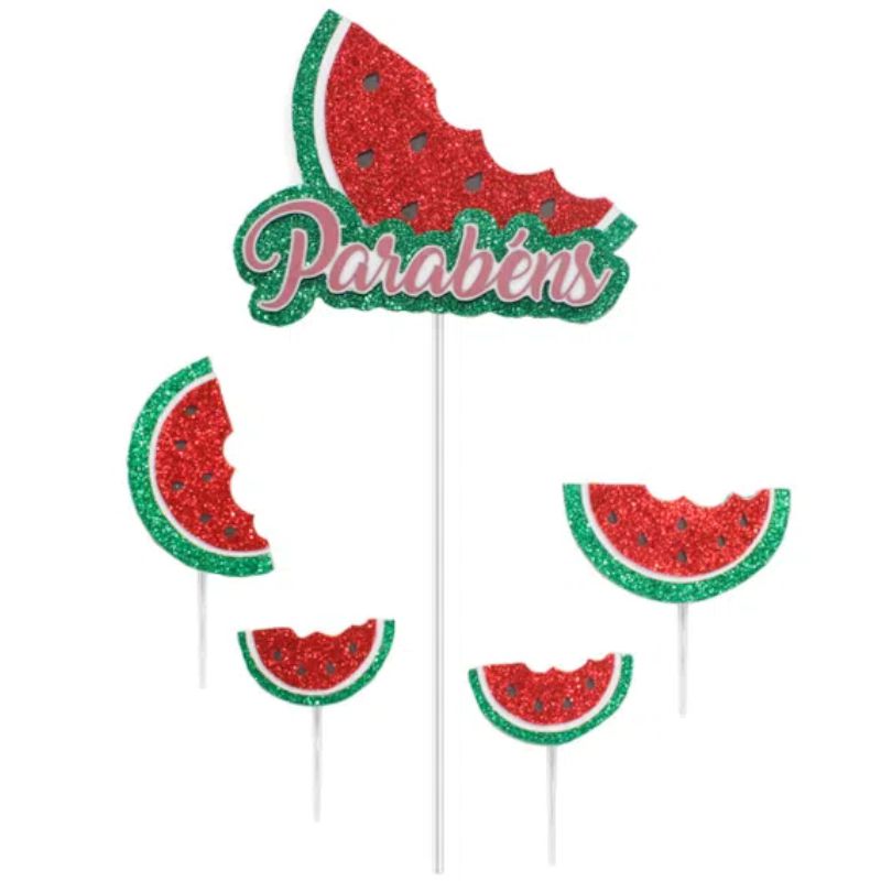 TOPO DE BOLO 3D MELANCIA GLITER - REFERÊNCIA 114011 - PIFFER - LOJA DO ABENÇOADO