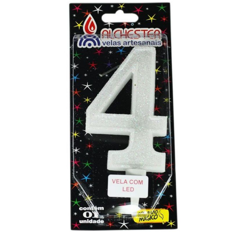 VELA DE ANIVERSÁRIO LED N°4 - 01 UNIDADE - ALCHESTER - LOJA DO ABENÇOADO