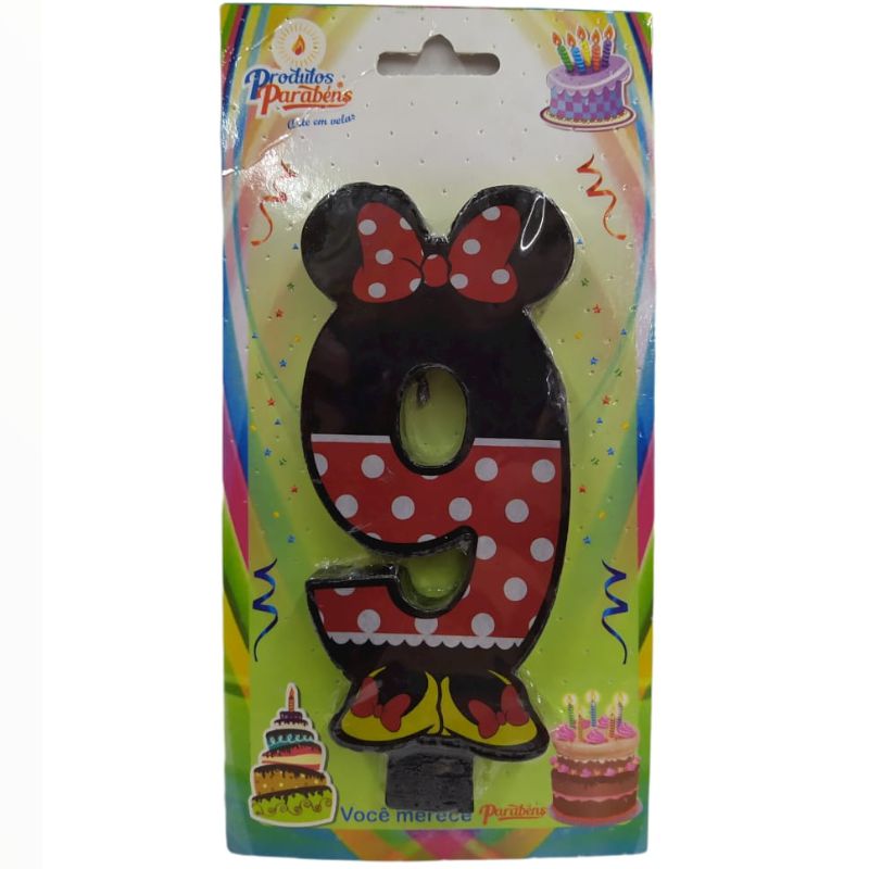 VELA DE ANIVERSÁRIO MINNIE MOUSE LACO N°9 - 01 UNIDADE - PRODUTOS PARABÉNS - LOJA DO ABENÇOADO